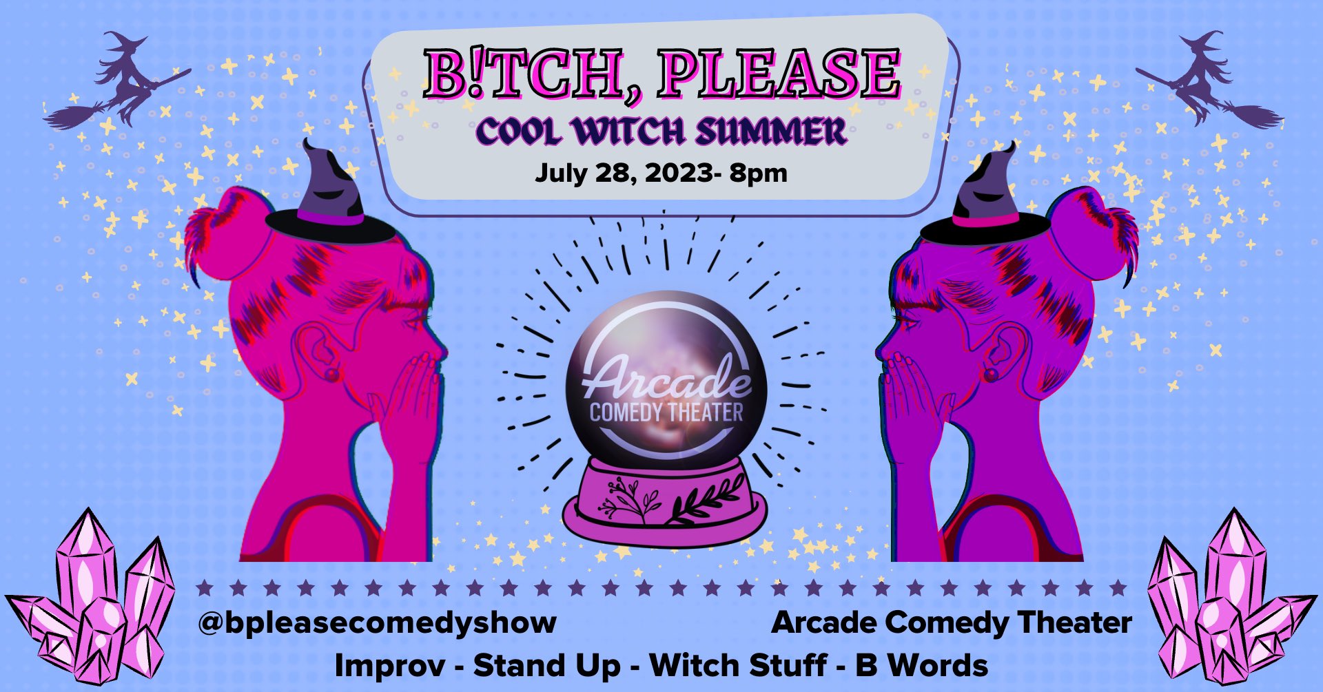 An evening of improv, stand up, and saying the B word. It’s hot out there, but it’s COOL in here. Down with Hot Girl Summer, welcome Cool chilly vibes and witchy wonderful ladies. At a time like this who wouldn’t want to run into the woods with their favorite pals and scream at the moon to manifest their dreams! This month we dive into the history of witch culture in a spooky mid summer romp!