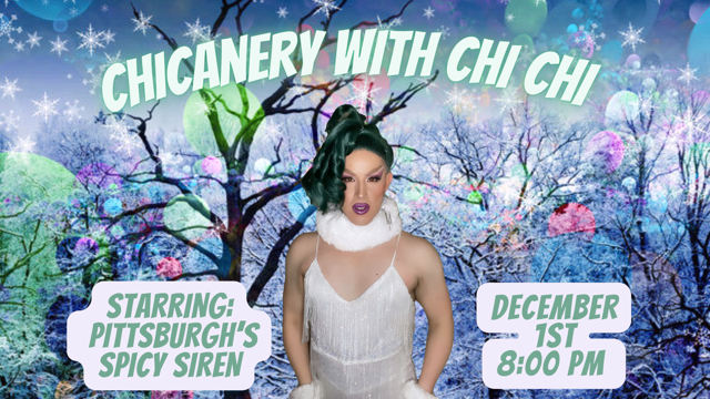 Chicanery with Chi Chi: Pittsburgh’s own “Spicy Siren” doesn’t want a lot for this December holiday season, but there is one thing she needs, and that’s to your beautiful face in the audience. You can expect vocals sweeter than your favorite holiday cookie and jokes that are saucier than your aunt, two bottles in.