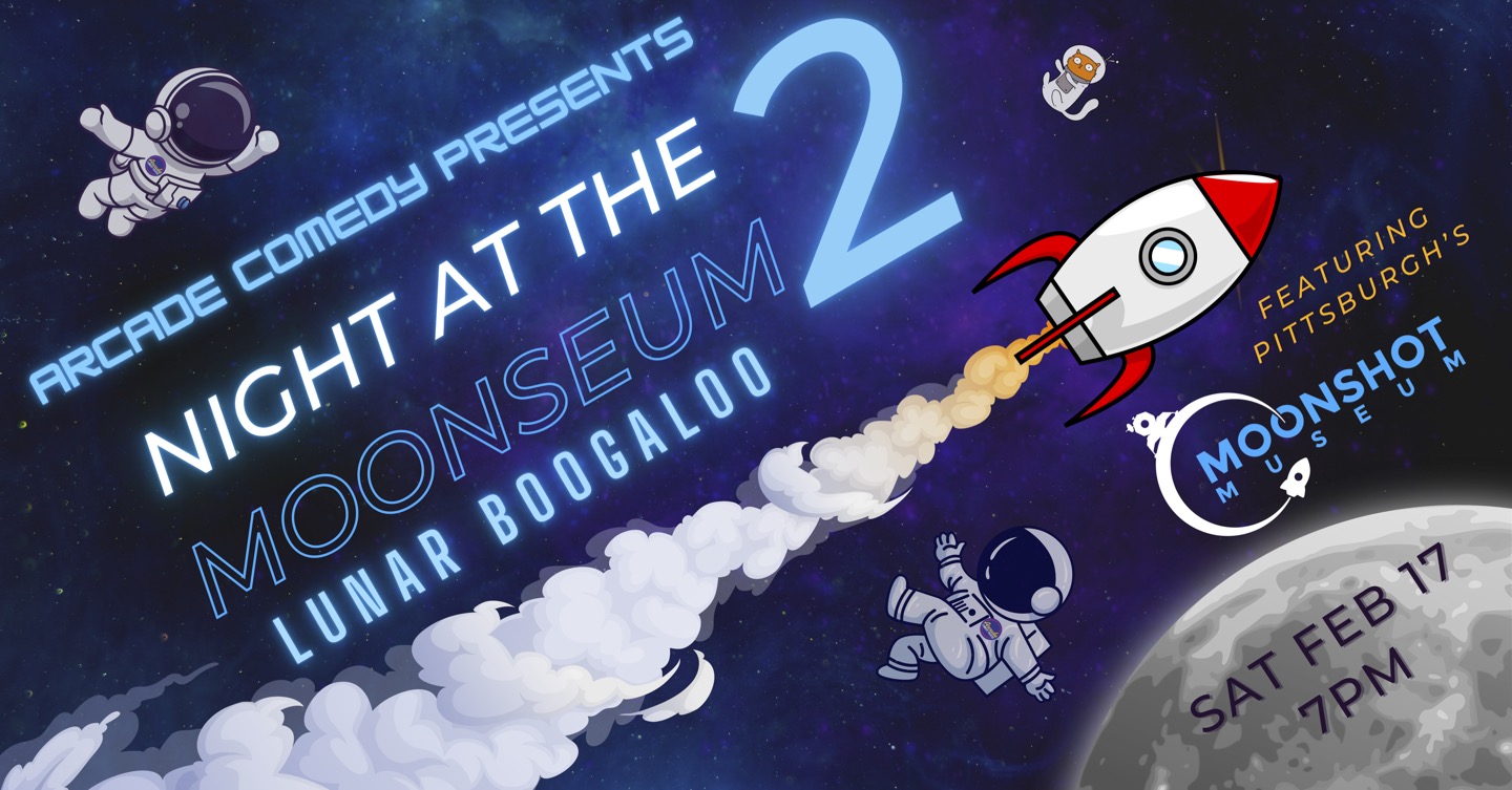 Join us for an evening of learning and laughs as Pittsburgh’s Moonshot Museum brings a load of lunar themed educational segments led by Moonshot’s educational director, Mike Hennessy (seen recently on NASA TV). This all ages show is meant to inspire not only curiosity, but comedy, as Arcade’s improvisers will use these segments to fuel scenes and games.