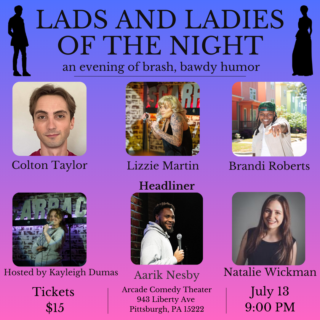 Where new jokes come alive! The Stand-Up Laboratory is a new incubator space presented by Arcade Comedy Theater. Every month, the Lab will present a mix of feature comics and a roster of comedians chosen from online submissions. Enjoy a night of comedy highlighting newer material from Pittsburgh's best comedians and its rising stars.